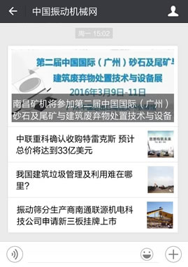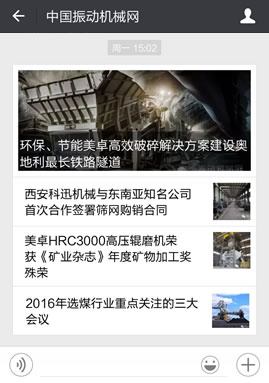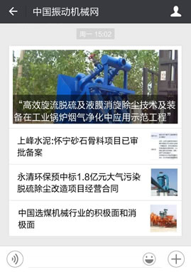 中國振動機械網(wǎng)整合10年的行業(yè)資源,全力打造振動機械行業(yè)動態(tài)微信官方服務號,24小時全景展現(xiàn)行業(yè)動態(tài),感受全新的閱讀體驗,一手掌握振動機械天下事。新的振動機械動態(tài)體驗。