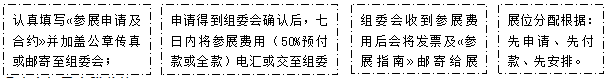 ◎ 特別提示:報(bào)名申請(qǐng)展位成功后,組委會(huì)將復(fù)函給予確認(rèn),七個(gè)工作日內(nèi)將參展費(fèi)用(全款或50%預(yù)付款)匯至組委會(huì);組委會(huì)收到參展費(fèi)用后即出具等額發(fā)票并郵寄給展商。