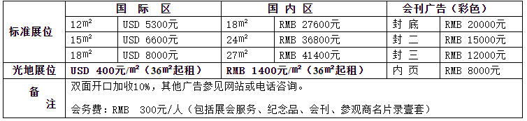 CSFE-收費標準(標準展位18㎡配置:兩桌四椅、四只射燈、中英文楣標、地毯、220V插座)