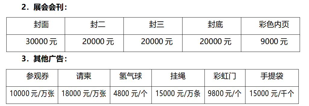 現(xiàn)場廣告牌規(guī)格:4m×6m,價格:20000元/塊/會期。