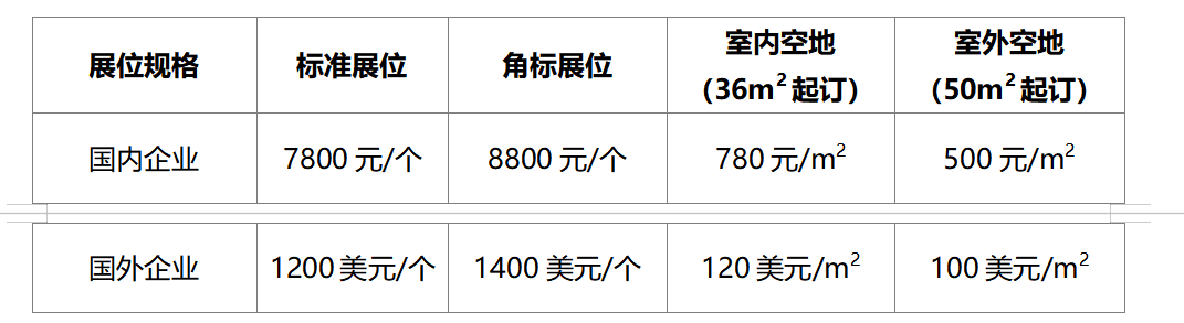 注:a. 標準展位提供:三面圍板、楣板制作、洽談桌一張、折椅兩把、射燈兩只、10A插座一個。