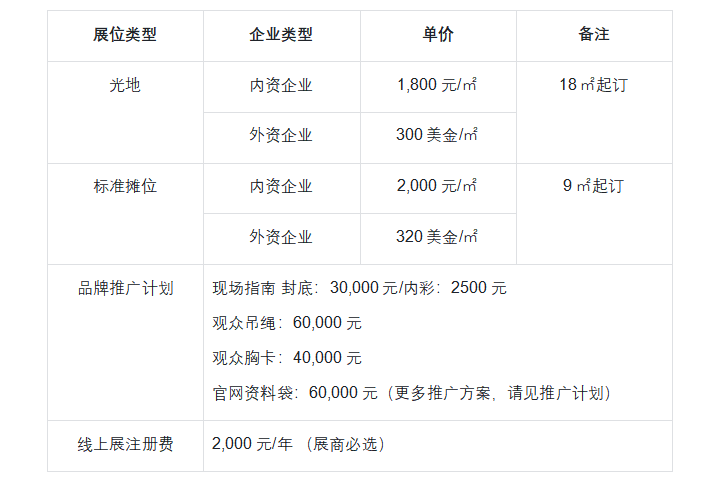 展位價(jià)格: 所有報(bào)價(jià)均不含稅