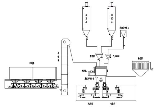 該生產(chǎn)線是將干燥篩分處理好的沙子、石子、膠凝料(如水泥、粉煤灰)、化學(xué)添加劑等按設(shè)定配方進(jìn)行精確計(jì)量和混合攪拌,并對成品料進(jìn)行包裝的生產(chǎn)設(shè)備。