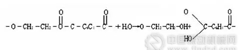 水解即縮合的逆反應(yīng)。纖維水解是由于水分子介入到纖維中而使高分子分解為二的反應(yīng),母體分子的一個(gè)部分從水分子中獲取了一個(gè)氫離子(H+),而另一個(gè)基團(tuán)則從水分子中聚集了羥基(OH-),使其分子鏈斷裂生成新的小分子物質(zhì)的過程。由于分子量變小,纖維抗拉強(qiáng)度減弱而損壞。所以縮聚型聚合體生產(chǎn)的合成纖維是不耐水解的。如常用的聚酯類、聚丙烯、諾梅克斯等濾料很容易發(fā)生水解。聚酯類纖維與諾美克斯纖維水解式如下: