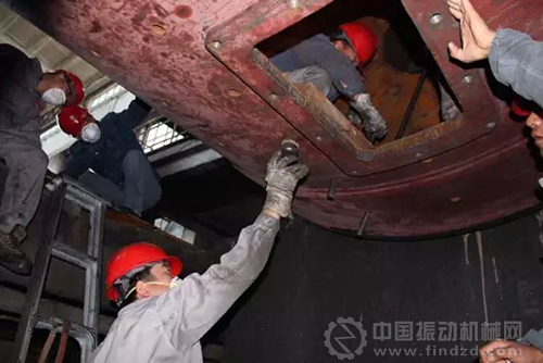 在球磨機(jī)筒體內(nèi)外,班組成員配合默契、抬、撬、翻、推、擰多次重復(fù)的動(dòng)作,多次奮力的配合,一分分的堅(jiān)持,一滴滴的汗水,為設(shè)備的穩(wěn)定運(yùn)行提供著有力的保障。