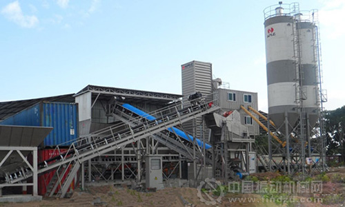 位于坦桑尼亞的南方路機(jī)集裝式斗提水泥混凝土攪拌站HZDJ125
