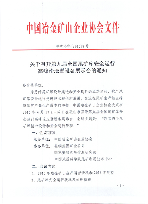 關(guān)于召開第九屆全國尾礦庫安全運行高峰論壇暨設(shè)備展示會的通知 ..