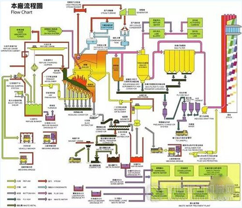 圖3 臺灣臺北市北投垃圾焚燒發(fā)電廠流程圖
