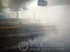 冬季運(yùn)行中好氧發(fā)酵槽區(qū)出現(xiàn)水汽無法及時(shí)排出,在鋼結(jié)構(gòu)表面大量凝結(jié)并回落倉內(nèi)現(xiàn)象;即使在夏季運(yùn)行中倉內(nèi)能見度仍然很低(見圖2)。目前采取的措施是引風(fēng)系統(tǒng)全天滿負(fù)荷運(yùn)轉(zhuǎn),帶來的問題是電耗增加。出現(xiàn)上述問題的主要原因是敞開式堆肥作業(yè)面導(dǎo)致引風(fēng)系統(tǒng)動(dòng)力效率較低,優(yōu)化的方法是發(fā)酵槽相對(duì)獨(dú)立設(shè)置,提高臭氣濃度,在相同的動(dòng)力消耗下可實(shí)現(xiàn)更高的工作效率。