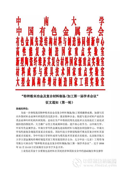 “特種粉末冶金及復合材料制備/加工第一屆學術會議” 征文通知(第一輪) ..
