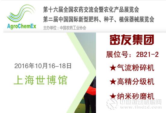 第十六屆全國農(nóng)藥交流會暨農(nóng)化產(chǎn)品展覽會將于2016年10月16-18日在上海世博館舉辦。