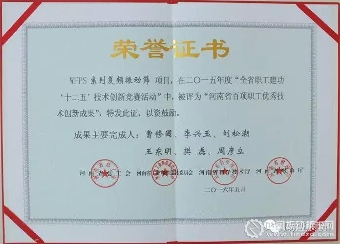 近日,從河南省總工會(huì)傳來(lái)喜訊,河南威猛振動(dòng)“WFPS系列復(fù)頻振動(dòng)篩”在2015年度全省職工建功‘十二五’技術(shù)創(chuàng)新競(jìng)賽活動(dòng)中,分別被河南省總工會(huì)、省工業(yè)和信息化委員會(huì)、省科學(xué)技術(shù)廳、省財(cái)政廳評(píng)為“河南省百項(xiàng)職工優(yōu)秀技術(shù)創(chuàng)新成果”。此項(xiàng)成果主要由公司中央研究院總工曹修國(guó)等人共同完成。