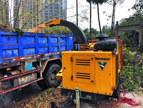 受臺(tái)風(fēng)影響,珠海市許多樹木倒伏、樹枝折斷,大量園林垃圾亟待處理。昨日從珠海市市政和林業(yè)局獲悉,市計(jì)劃采購10臺(tái)樹枝粉碎機(jī),不僅可以將樹枝直接粉碎裝入貨車運(yùn)走,粉碎后的碎渣經(jīng)漚制還可變成有機(jī)肥料。目前一臺(tái)樹枝粉碎機(jī)正在白蓮洞公園使用。