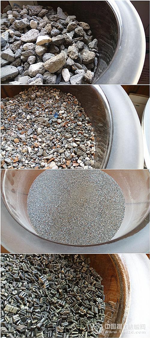 自上而下,依次是:大顆粒骨料、小顆粒骨料、粉末骨料和塑料顆粒
