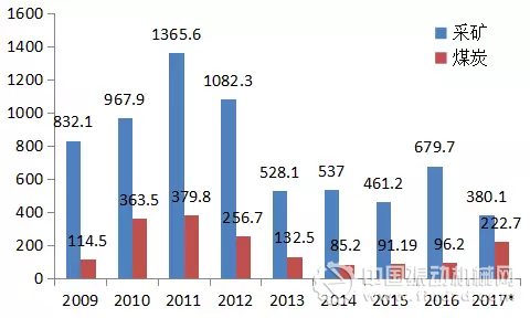 2009年以來全球采礦和煤炭領(lǐng)域并購(gòu)金額變化(億美元)