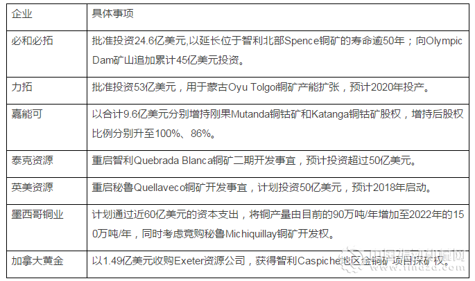 為此,即便是在整體投資規(guī)模保持縮減的壓力下,主要礦業(yè)公司仍開始加大對(duì)銅資源開發(fā)領(lǐng)域的投資。