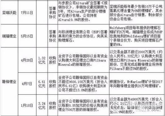 據(jù)不完全統(tǒng)計(jì),2017年國(guó)內(nèi)多方勢(shì)力在海外布局鋰礦資源項(xiàng)目近20起,布局方式主要有直接收購(gòu)鋰礦企業(yè)股權(quán)和簽署承購(gòu)協(xié)議兩種方式。