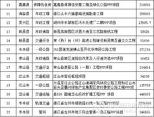 近日,浙江省財(cái)政廳發(fā)布第四批PPP推薦項(xiàng)目共53個(gè),總投資金額1424億元。其中,與基建相關(guān)的項(xiàng)目30個(gè),總投資763億元。具體如下: