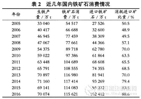按照中國礦山協(xié)會的統(tǒng)計(jì)結(jié)果,2016年中國原礦產(chǎn)量折算成成品礦的產(chǎn)量不足4億t。這意味著國內(nèi)鐵礦石的產(chǎn)量遠(yuǎn)不能滿足我國鋼鐵生產(chǎn)需求。