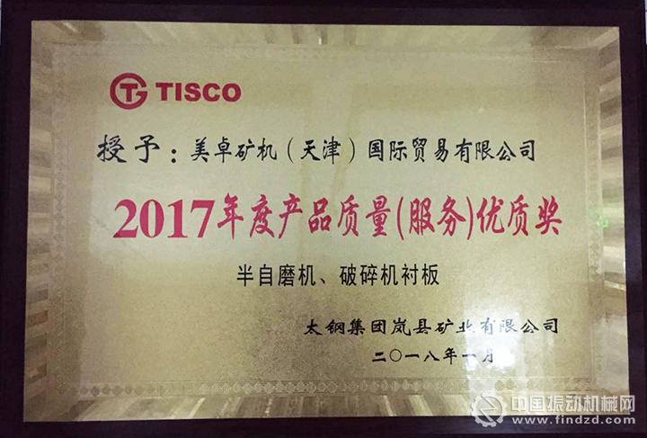 近日,在太鋼袁家村鐵礦在2018年產(chǎn)品質(zhì)量提升專題會(huì)上,對(duì)2017年度袁家村鐵礦主體設(shè)備旋回破碎機(jī)、半自磨機(jī)、球磨機(jī)以及渣漿泵等關(guān)鍵設(shè)備的襯板、過流件等大型備件使用情況進(jìn)行了通報(bào),并對(duì)優(yōu)質(zhì)廠商提出了表彰。美卓憑借卓越的產(chǎn)品質(zhì)量和出眾的服務(wù),榮獲“太鋼2017年度產(chǎn)品質(zhì)量(服務(wù))優(yōu)質(zhì)獎(jiǎng)”。