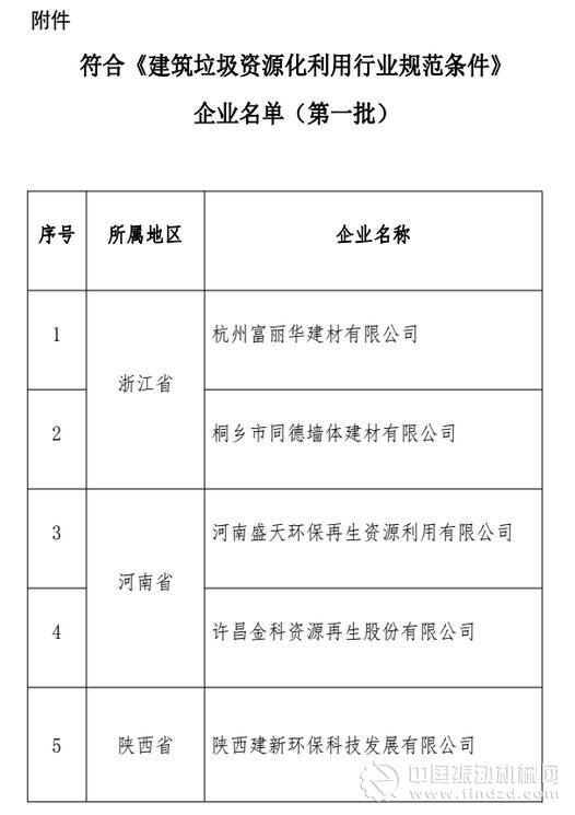 工信部:符合《建筑垃圾資源化利用行業(yè)規(guī)范條件》企業(yè)名單(第一批)