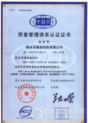 新鄉(xiāng)市振動電機(jī)有限公司連續(xù)多年被評為“新鄉(xiāng)市重合同守信用企業(yè)”,并被市技術(shù)監(jiān)督局評為"質(zhì)量管理先進(jìn)單位"。公司研制開發(fā)的產(chǎn)品多次獲得機(jī)械工業(yè)部科技進(jìn)步一等獎;全國質(zhì)量服務(wù)消費(fèi)者滿意企業(yè);全國質(zhì)量信得過產(chǎn)品。