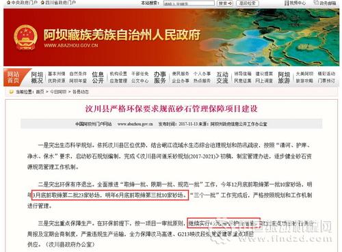 四川省汶川縣相關部門要求,3月31日之前23家非法砂石廠停止經(jīng)營活動,并于4月15日前拆除非法建筑物,自行清理相關設施和原料物資,實施生態(tài)恢復,并在6月底前取締第三批10家砂場!