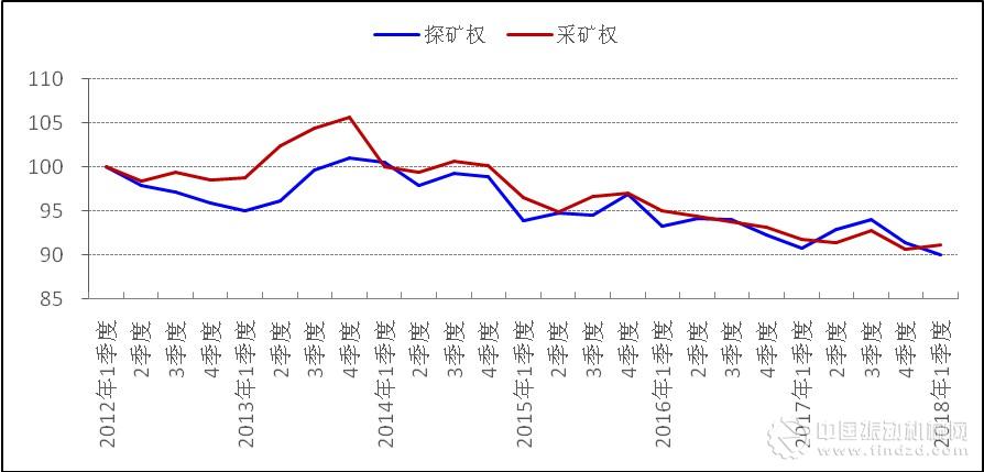 我國(guó)探礦權(quán)、采礦權(quán)季度活躍指數(shù)走勢(shì)圖(2012-2018)