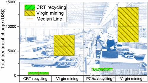 研究人員收集到中國8家回收公司的數(shù)據(jù),計算了從廢舊電視機中回收黃金和銅的成本,包含電子垃圾收集成本,設備成本和建筑物成本等。
