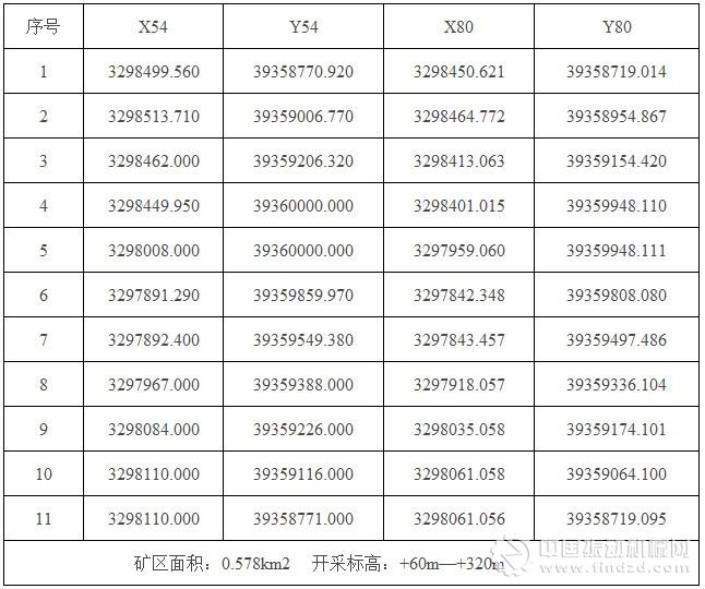 表1-1 北山礦區(qū)范圍拐點坐標表