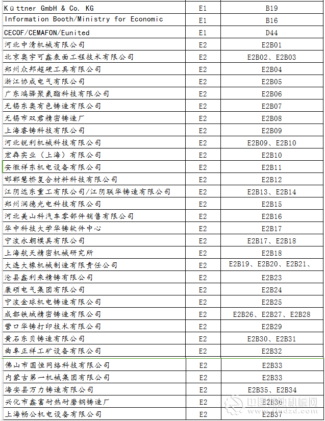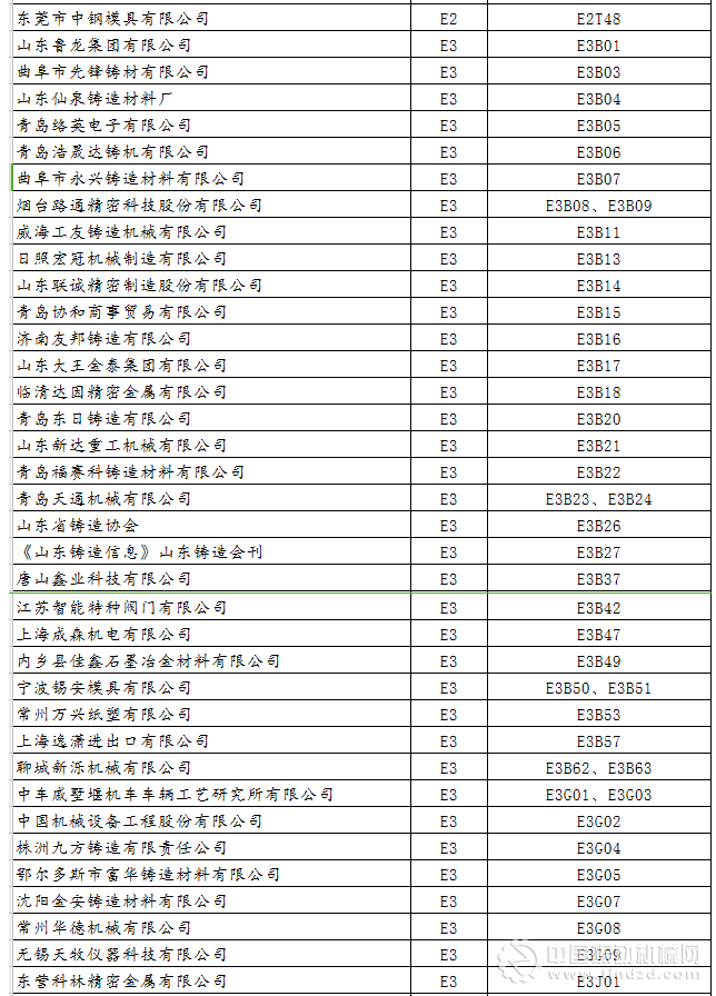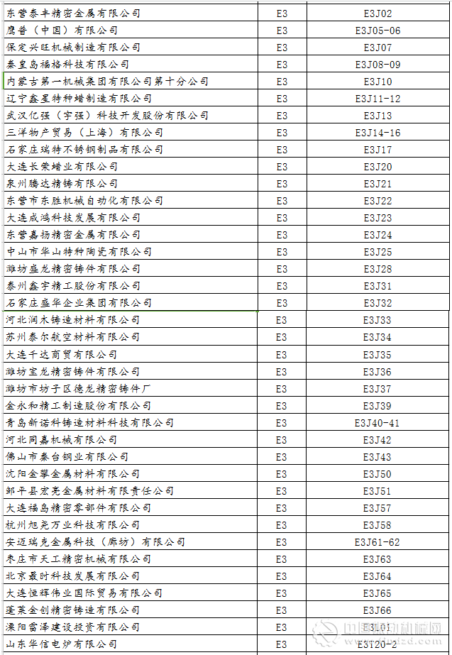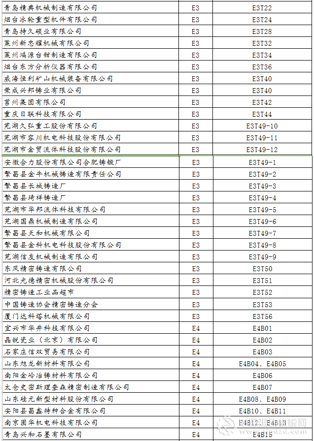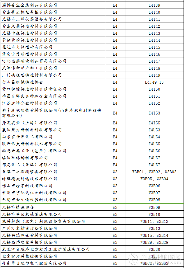 以下是2018中國(guó)鑄造博覽會(huì)展商名單(部分):