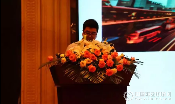 圖為:山美股份建筑固廢事業(yè)部部長陳俊友在本次大會作專題報告