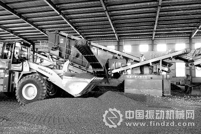 昨天,工人在石景山區(qū)建筑垃圾資源化處置基地對建筑垃圾進行處理。