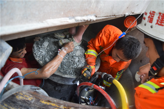 6月14日15時7分,龍巖市永定區(qū)坎市鎮(zhèn)泉秀礦業(yè)一工人在檢修球形碎石機時,不慎跌落機器內(nèi)部,右腳被機器卡死無法動彈。報警求助后,龍巖永定消防立即出動相關(guān)力量趕赴現(xiàn)場救援。