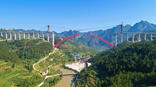 6月30日10時許,隨著最后一節(jié)鋼管吊裝安裝就位,橫跨在貴州省羅甸縣沫陽鎮(zhèn)董當鄉(xiāng)大井村大井河上的世界山區(qū)最大跨徑上承式鋼管混凝土拱橋——平塘至羅甸高速公路大小井特大橋主拱順利合龍,標志著新的世界紀錄刷新。大小井特大橋全長1.5公里,是世界上最大跨徑的上承式鋼管混凝土拱橋,主橋主跨為450m,引橋采用40m裝配式組合T梁。該橋的建設(shè)單位是貴州省公路開發(fā)有限責任公司,貴州橋梁建設(shè)集團有限責任公司、貴州路橋集團有限公司聯(lián)合施工,是貴州本地企業(yè)完全自主建設(shè)的第一座世界級大橋。