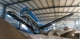 山東臨淄,克磊鏝移動式破碎篩分線在廠房內(nèi)再生混凝土板。