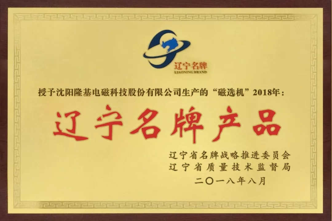 近日,經(jīng)遼寧省質(zhì)量技術(shù)監(jiān)督局、遼寧省名牌產(chǎn)品推進(jìn)委員會(huì)全體會(huì)議審定和社會(huì)公示,沈陽隆基磁選機(jī)在全省眾多產(chǎn)品中脫穎而出,榮獲“遼寧名牌產(chǎn)品”稱號(hào)。