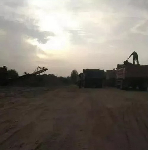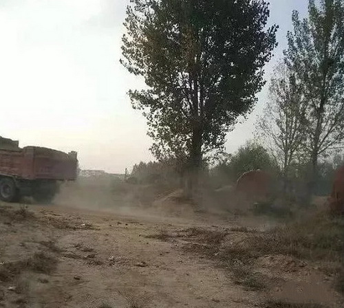 在楊樓鎮(zhèn)燕山水庫周邊,發(fā)現(xiàn)只有鑫瑞石化加油站后一采砂場拉砂車輛往來不絕,通往采砂場的道路煙塵彌漫,不時有滿載砂石的卡車從采砂場笨拙的駛出,經(jīng)詢問司機師傅獲悉,砂石正是運往指定的屈某某砂廠。
