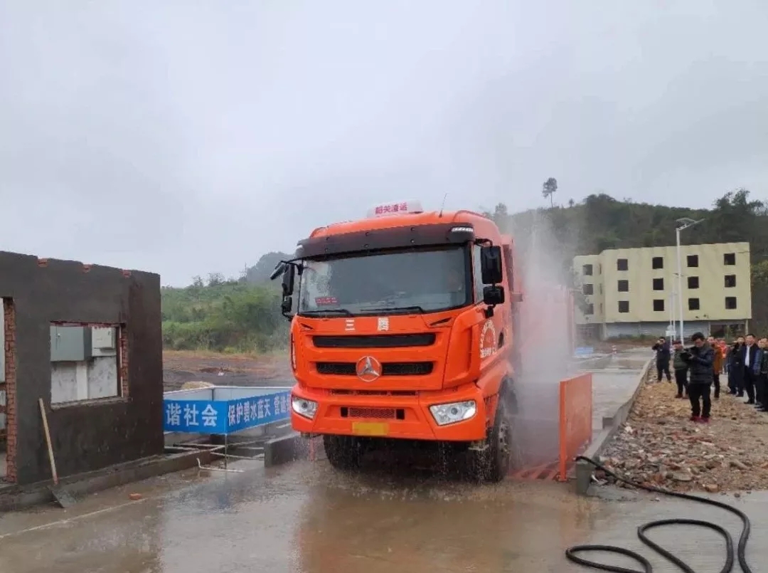 運(yùn)輸車經(jīng)過(guò)沖洗槽