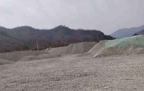 兩天前,在龍泉坪村小龍門(mén)溝可以看到,大面積的植被渣石覆蓋,靠近山坡一側(cè),是成套的碎石設(shè)備。半山坡上整理出了幾塊空地,空地上堆放著新近制成的石子、石沙或石粉。