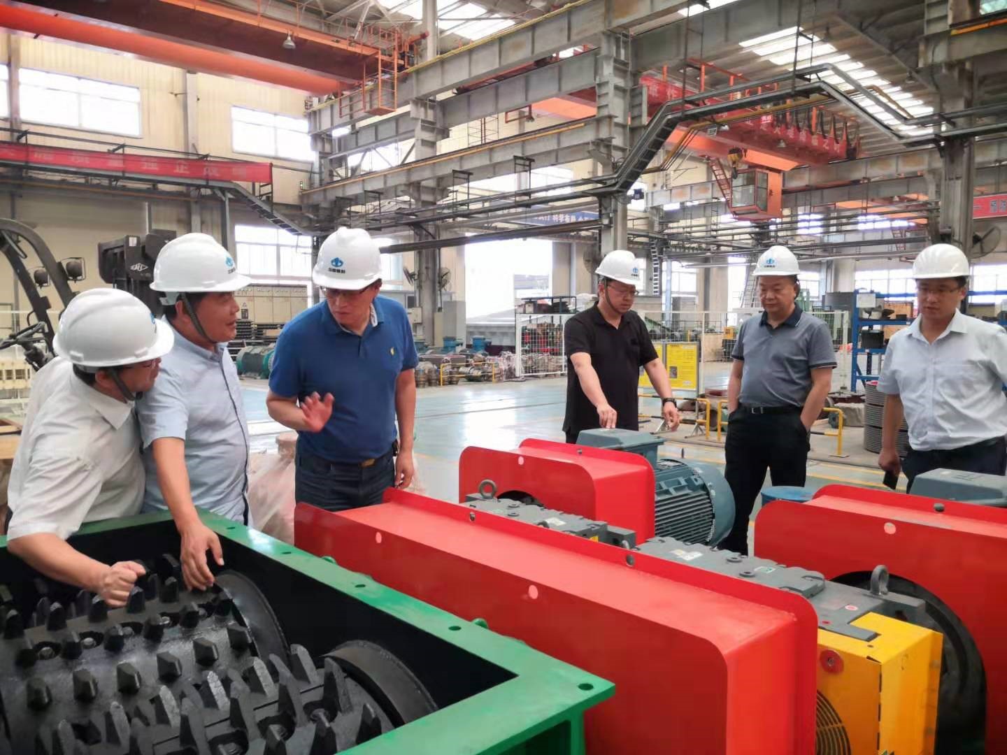 圖為中信建設(shè)領(lǐng)導(dǎo)正在檢查破碎機(jī)設(shè)備,并表示對(duì)產(chǎn)品質(zhì)量非常滿意