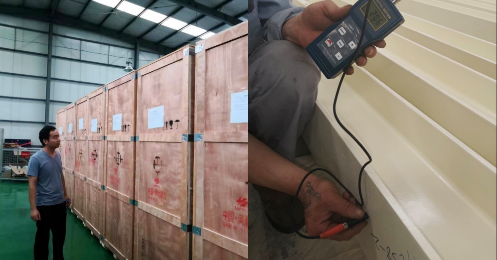 圖為監(jiān)造人員進(jìn)行包裝和漆膜厚度的檢查,不忽視任何一個(gè)細(xì)節(jié)