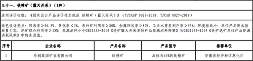 馬鋼集團(tuán)礦業(yè)有限公司鐵精礦產(chǎn)品入選綠色設(shè)計(jì)產(chǎn)品公示名單