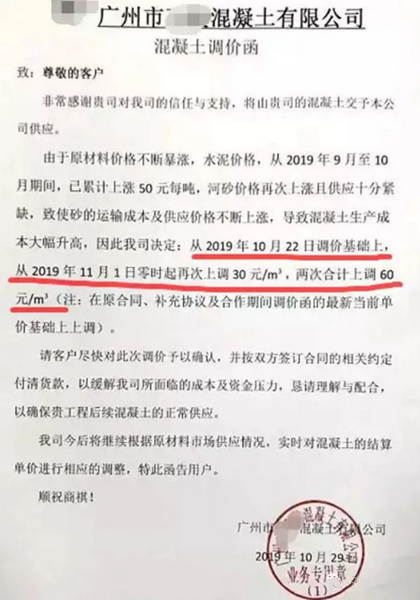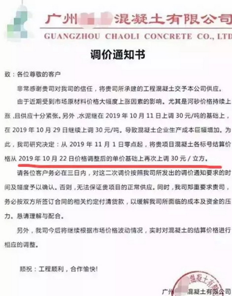 近日,受各地重污染天氣預(yù)警的影響,華東、華北、中南等多地水泥價格出現(xiàn)了多輪大幅度上漲。以廣東為例,日前廣東某混凝土公司發(fā)布調(diào)價函稱,混凝土主要原材料水泥上漲80元/噸、石子上漲20元/噸、砂子80元/噸,且主要原材料價格出現(xiàn)市場緊缺狀態(tài),導(dǎo)致混凝土原材料成本大幅上漲,已造成混凝土生產(chǎn)成本急劇增加,壓力無法承擔(dān)。