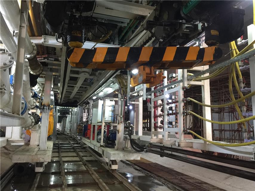 據(jù)中國(guó)中鐵廣州工程局城軌公司項(xiàng)目負(fù)責(zé)人介紹,中國(guó)中鐵768號(hào)土壓泥水雙模盾構(gòu)機(jī),刀盤直徑6.48米,總長(zhǎng)120米,重約600多噸,為串聯(lián)式雙模盾構(gòu)機(jī),具備獨(dú)立的土壓平衡模式掘進(jìn)和泥水模式掘進(jìn)2種模式,是我國(guó)首臺(tái)螺旋輸送出渣式雙模盾構(gòu)機(jī)。在施工中,盾構(gòu)機(jī)泥水模式下掘進(jìn),采用螺機(jī)排漿,有效解決了渣土滯排問(wèn)題,同時(shí)配備可移動(dòng)式滾筒式碎石機(jī)及平臺(tái),能適應(yīng)各類地層掘進(jìn)施工,極大的提高了地鐵施工效率。