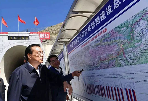 2018年7月,李克強(qiáng)總理在西藏考察,飛抵拉薩貢嘎機(jī)場(chǎng)后,直奔山南市川藏鐵路拉林段施工現(xiàn)場(chǎng),考察勘探設(shè)計(jì)和施工進(jìn)度。