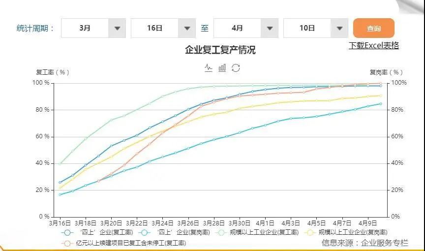截至4月7日,全省億元以上續(xù)建項目復(fù)工率98.0%,飆升了71.1個百分點,到崗率也由不到20%升至84.6%。