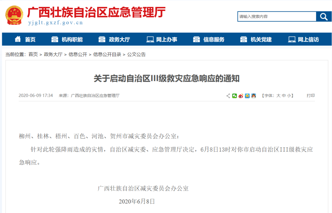 廣西壯族自治區(qū)啟動(dòng)自治區(qū)III級(jí)救災(zāi)應(yīng)急響應(yīng)