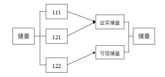 (三)將老分類標(biāo)準(zhǔn)中的各類資源量按照地質(zhì)可靠程度轉(zhuǎn)換為新分類標(biāo)準(zhǔn)的探明資源量、控制資源量和推斷資源量(圖3)。