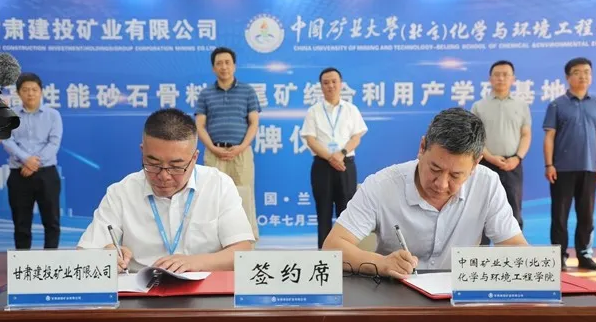 為加強(qiáng)綠色礦山創(chuàng)建過程,更好的在高性能砂石骨料生產(chǎn)與應(yīng)用、機(jī)制砂尾粉處置、安全生產(chǎn)管理、生態(tài)環(huán)境恢復(fù)治理、實(shí)驗(yàn)室共建及專業(yè)人才培養(yǎng)等方面進(jìn)行全方位深度合作,7月31日,甘肅建投礦業(yè)公司與中國(guó)礦業(yè)大學(xué)(北京)化學(xué)與環(huán)境工程學(xué)院舉行“高性能砂石骨料及尾礦綜合利用產(chǎn)學(xué)研基地”簽約及揭牌儀式。